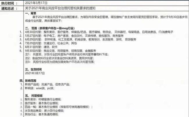 2、金融服務(wù)僅托管app下載類,文體器材僅托管戶外裝備,化工與能源僅托管消毒產(chǎn)品,軟件僅托管商用軟件,文娛傳媒僅托管小說(shuō)閱讀&文書(shū)期刊&其他,生活服務(wù)、商務(wù)服務(wù)僅新增部分二級(jí)行業(yè)進(jìn)行托管,取消全二級(jí)行業(yè)托管。